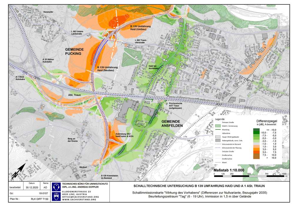 Im Fall der zuletzt von der UVP-Behörde und dem Bundesverwaltungsgericht (BVwG) geprüften Vorhaben zur B 139 Umfahrung Haid inkl. Anschlussstelle Traun zur A 1 West Autobahn durfte ich im Auftrag der Oö. Landesregierung und der ASFINAG das gesamte Genehmigungsverfahren vom Vorprojekt bis zur finalen Einreichung mit dem Ziel begleiten, die vorhabenbedingten Wirkungen (Entlastungen der bestehenden B 139 Kremsttal Bundesstraße, Auflösung der provisorischen Anschlussstelle Traun) auszuarbeiten. Und wie für ein UVP-pflichtiges Vorhaben typisch waren auch die Bau- und Errichtungsphasen im Sinne des Nachbarschaftsschutzes zu prüfen.