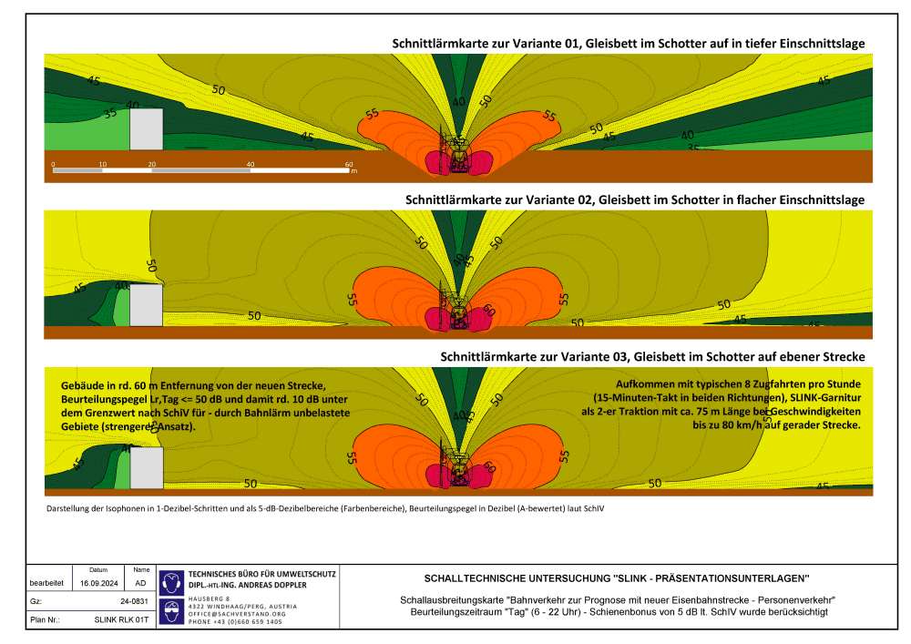 Nicht minder interessant waren auch die Arbeiten am Vorhaben „S-Link“, dem Salzburger Eisenbahnprojekt, bei dem ebenfalls der Nachbarschaftsschutz im Rahmen der projektbegleitenden Bürgerinformationen aus schalltechnischer Sicht zu beleuchten war.